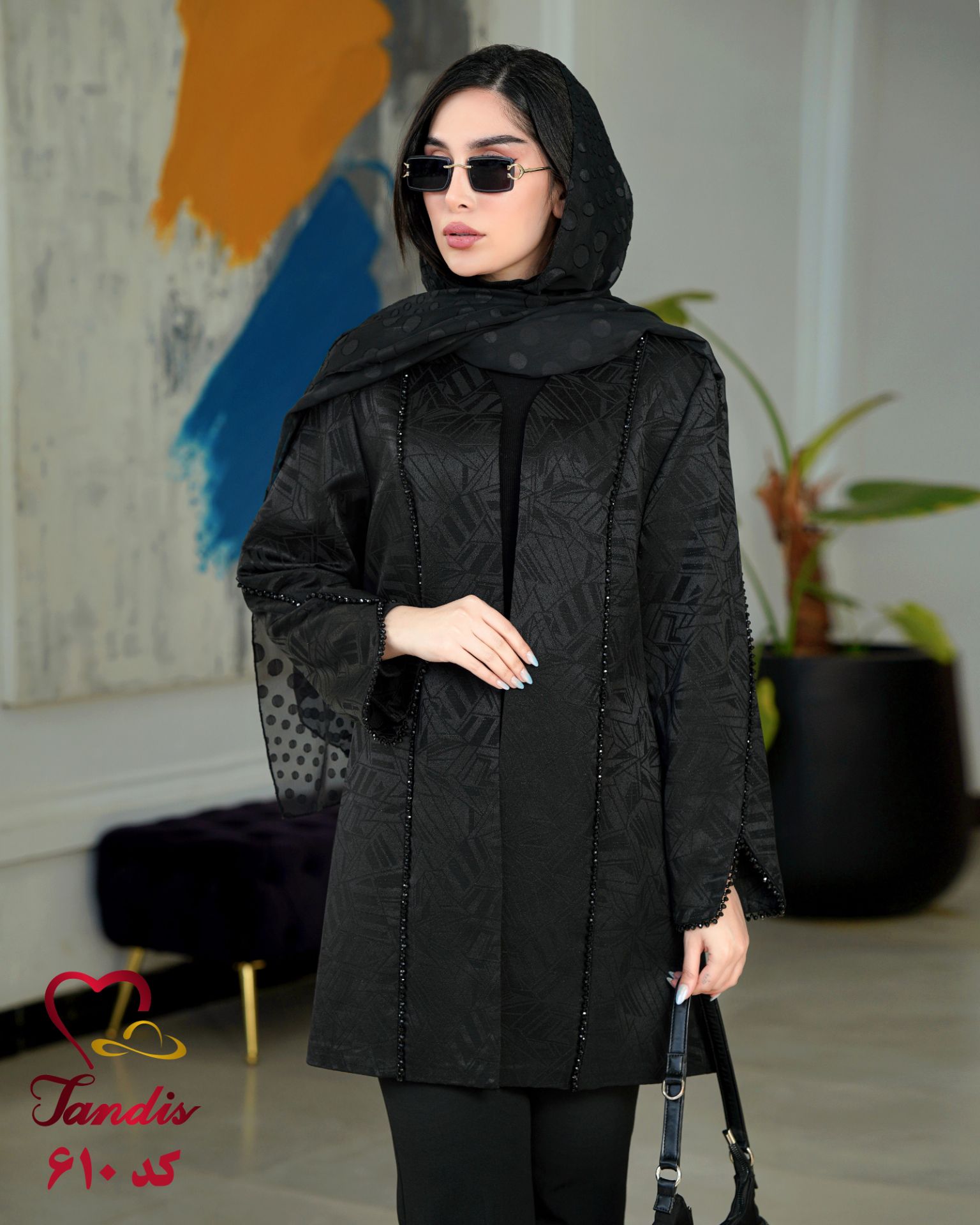 رنگ مشکی، به‌عنوان رنگی کلاسیک و جذاب، باعث می‌شود ترکیب جواهردوزی‌ها ظرافت بیشتری پیدا کند و در هر محیطی، از مهمانی‌های شب گرفته تا مراسم رسمی، بدرخشید.